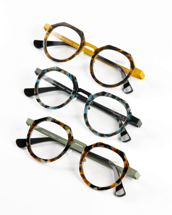 Hypoallergenic cellulose acetate is a natural polymer used in artisan, high‑end handmade frames.Our acetate is French‑made from wood cellulose. We craft our unique colors and finishes in plaque form before machining, maintaining traceability of shells and crustaceans for every production and every frame.