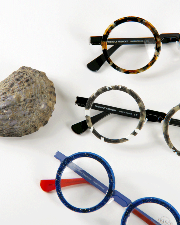 Hypoallergenic cellulose acetate is a natural polymer used in artisan, high‑end handmade frames.Our acetate is French‑made from wood cellulose. We craft our unique colors and finishes in plaque form before machining, maintaining traceability of shells and crustaceans for every production and every frame.